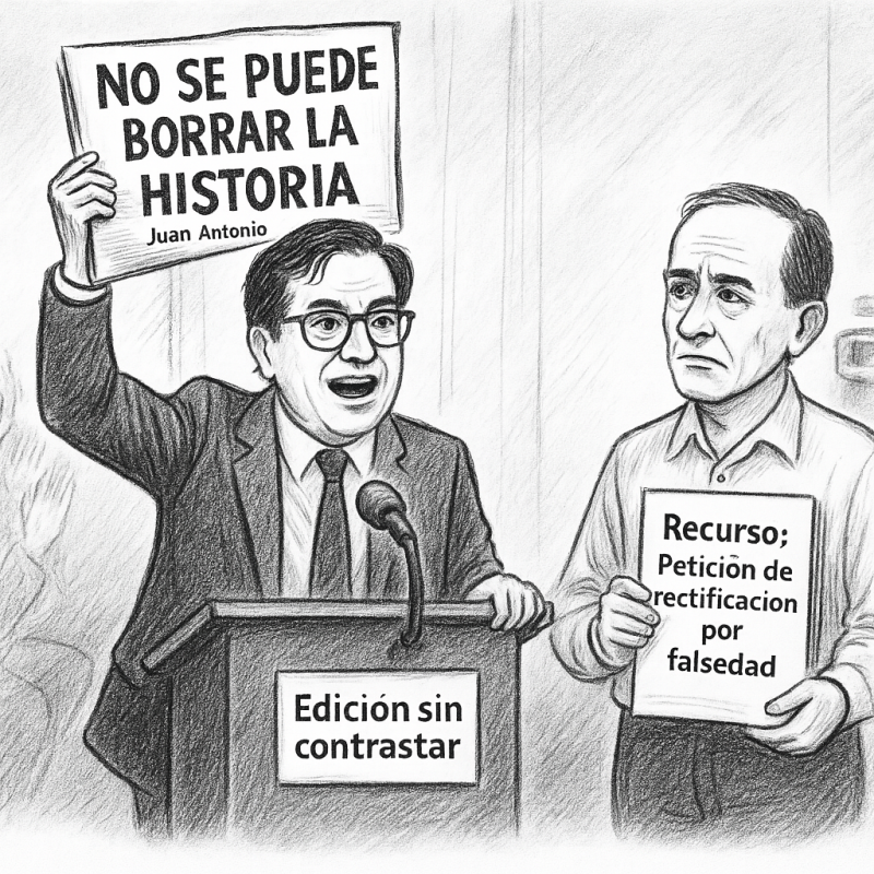 Tergiversa la naturaleza de mi reclamación: no fue para “borrar historia”, sino para corregir invenciones presentadas como hechos.