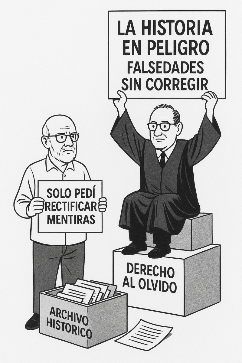 ¿Qué hace entonces el catedrático? Convertir mi petición en filón académico: habla de censura, de borrados digitales, de historia en peligro. Todo muy épico, todo muy universitario. Pero la realidad es menos heroica: nunca se trató de borrar la Historia, sino de impedir que se repitiera una mentira.